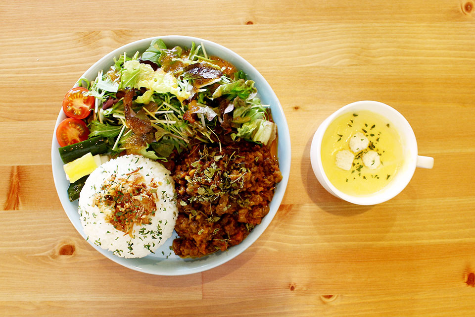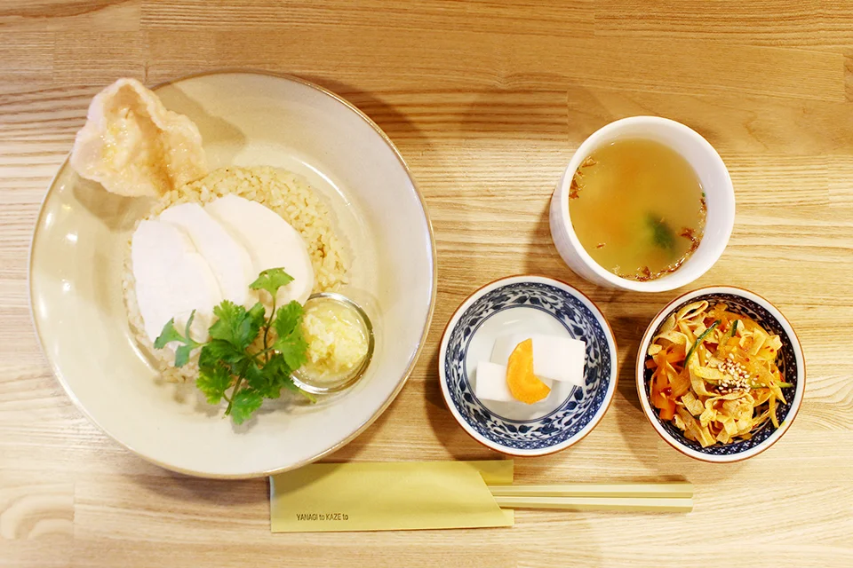新潟の食材で仕立てたチキンライス、「やなぎと風と」。