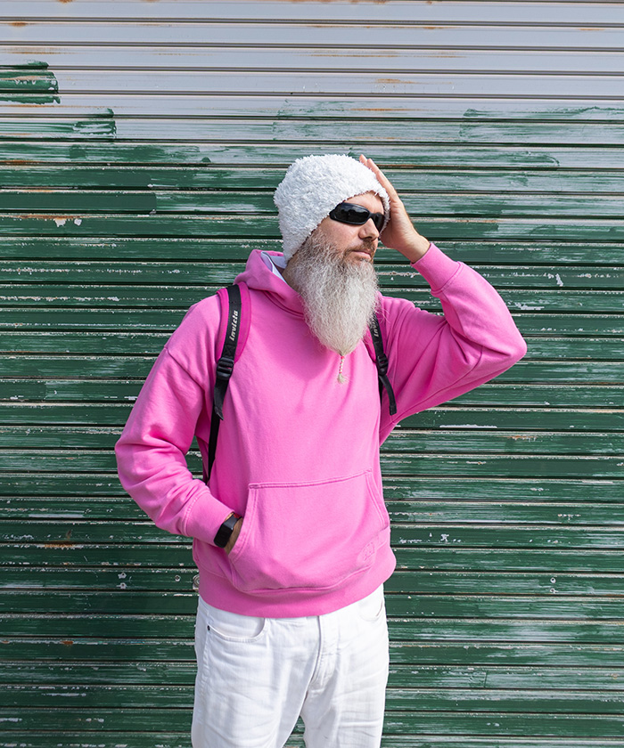 ミキさん:このサングラスはイタリアのブランドで、日本に来てからずっと同じモデルを使っています。海によく行くので、日差しの強い場所では必須なんです。このピンクのバックパックは、1990年代に地元の友人もみんな持っていた思い出のものです。好きな色が赤やピンクだから、身につけると元気が出ますね。