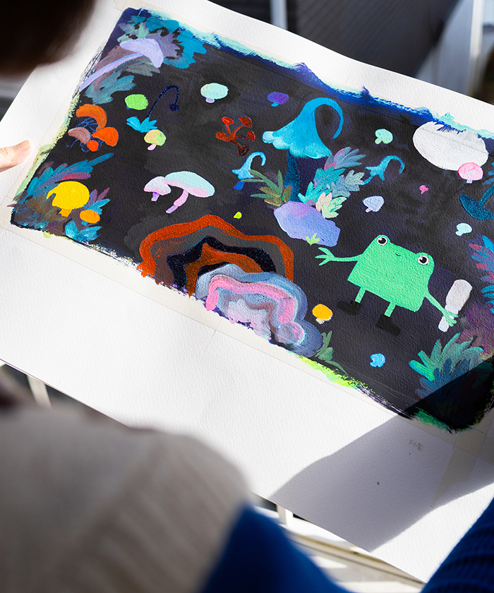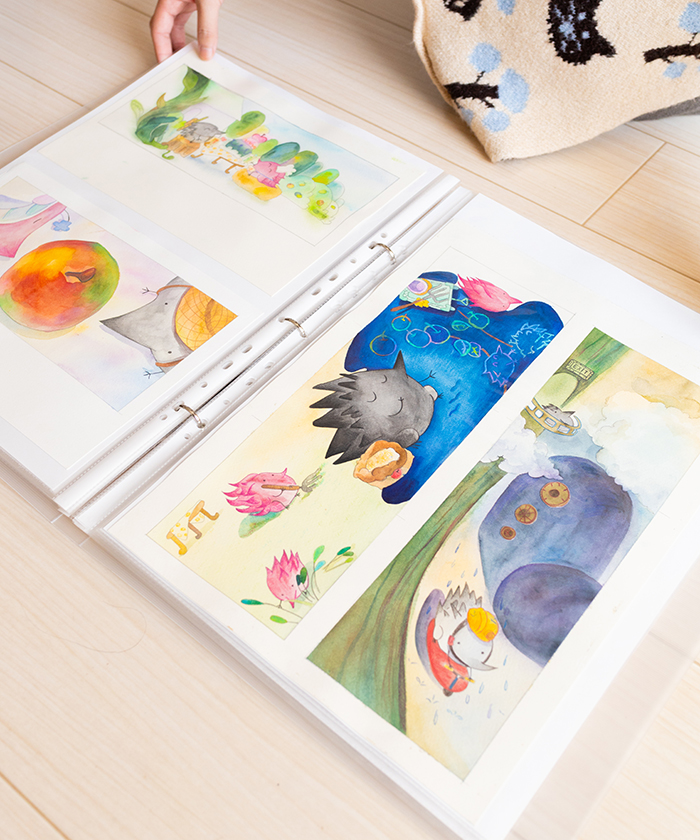 リュウさん:視覚領域のグラフィックや、絵本の制作をしています。子どもの頃から絵を描くのが好きで、高校は美術学校に通って、大学でも視覚デザインを専攻していました。ストーリー性のある表現が好きで、今は絵本というカタチに惹かれています。