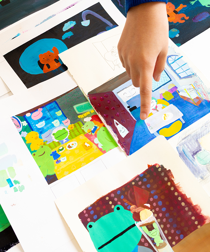 リュウさん:寓話の「井の中の蛙」をモチーフにした絵本を作っています。元の話は「蛙は外の世界を知らず世間知らずだ」という教訓ですが、私が描いているのは「蛙くんは井戸の中から出なくてもいいんじゃないか」という物語です。