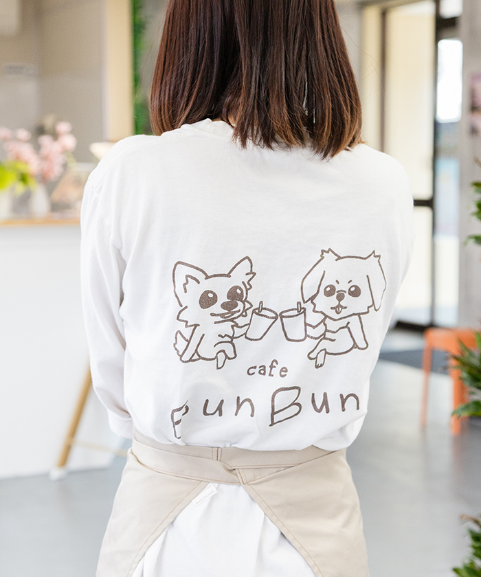 岩脇さん:私が阿賀野市の分田という地域の出身なので、そこからこの名前をつけました。小さいお子さんにも読んでもらえるように、「Bun」をふたつ並べてみました。お店のロゴには、実家の犬のイラストを描いてもらいました。足を組ませたら可愛いかなと思って、2匹には足を組んでもらっています(笑)