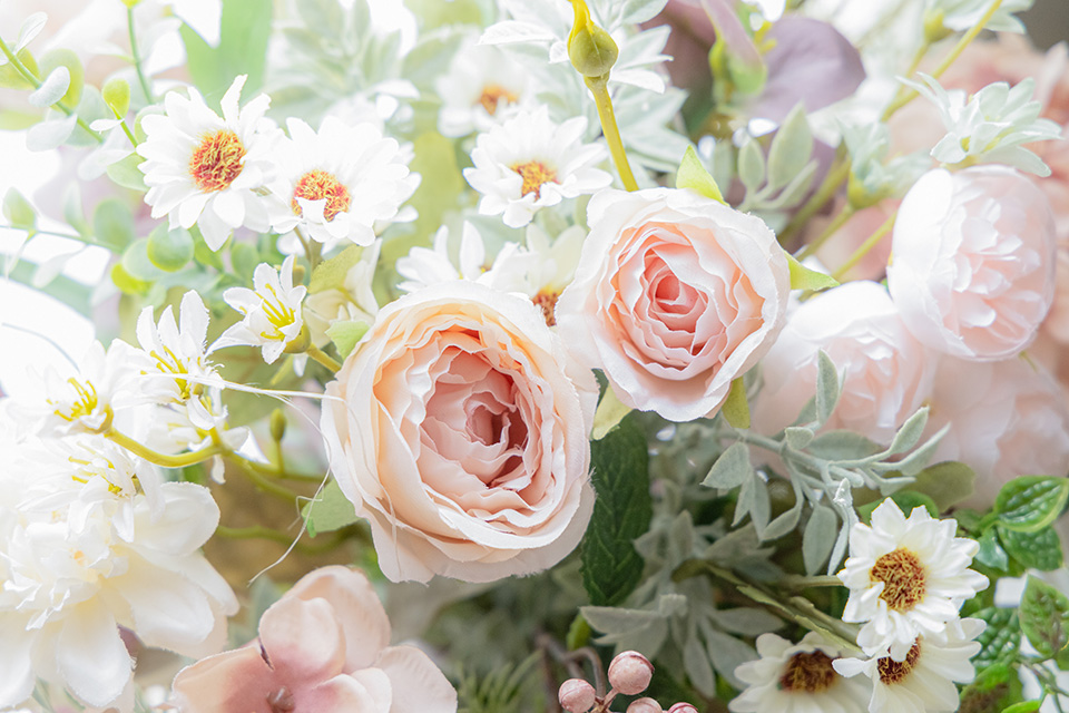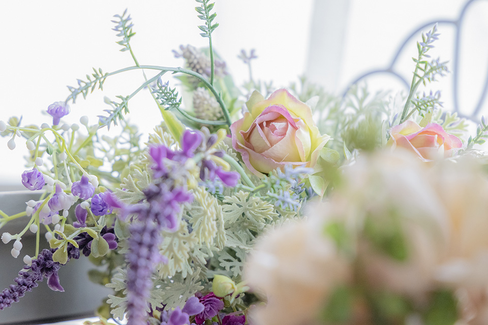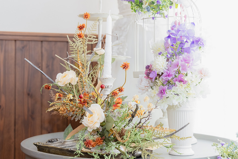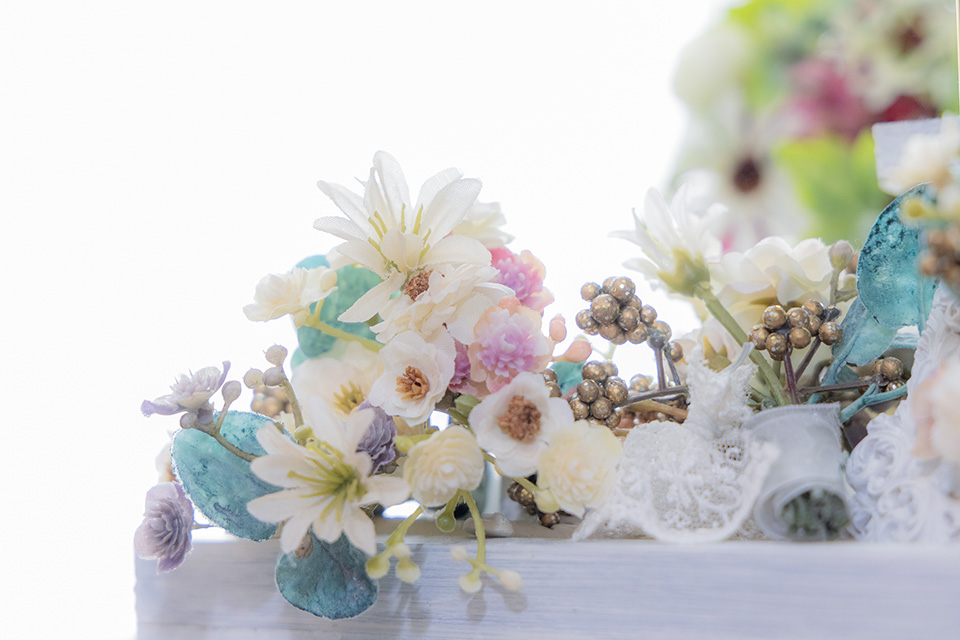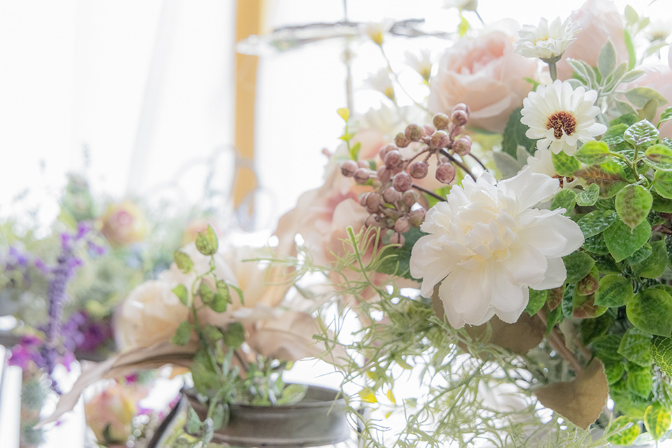 田中さん:インターネットでお花を検索するのが好きで、いろんな先生がつくった作品を見ていたんです。その中で「シャビー&ナチュラル」に出会って。それまで造花ってオブジェみたいなイメージが強かったんですけど、「シャビー&ナチュラル」の作品は生花のように見えて。そこに惹かれて、勉強をはじめて、教室を開くことにしました。