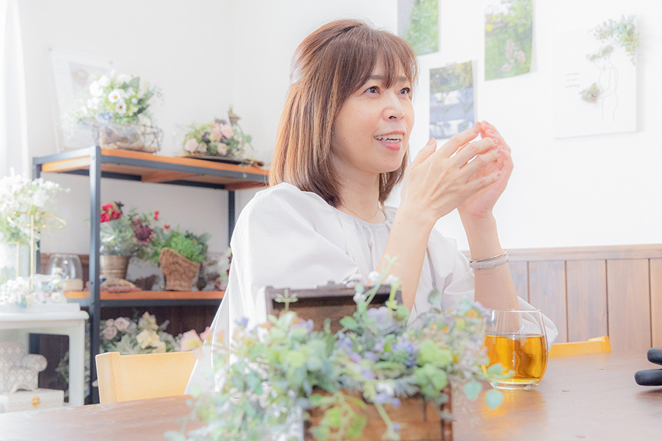 田中さん:「作品をつくるごとに、褒めてもらえる」って生徒さんが喜んでくれると、私もすごく嬉しいんです。お花を好きになれるだけじゃなくて、自分に自信が持てるのは、とても魅力的だと思います。