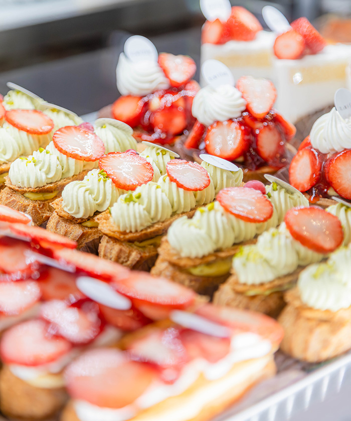 本間さん:「CACHE-CACHE」のオーナーから、ショーケースの中にケーキ以外のものを置いてほしいって言われたのがはじまりです。ケーキ以外でショーケースに並べて見栄えが良いものって考えたときに、エクレアが思い浮かんだんです。当時、エクレアをつくったことはなかったんですけど、やってみようと思ったんです。