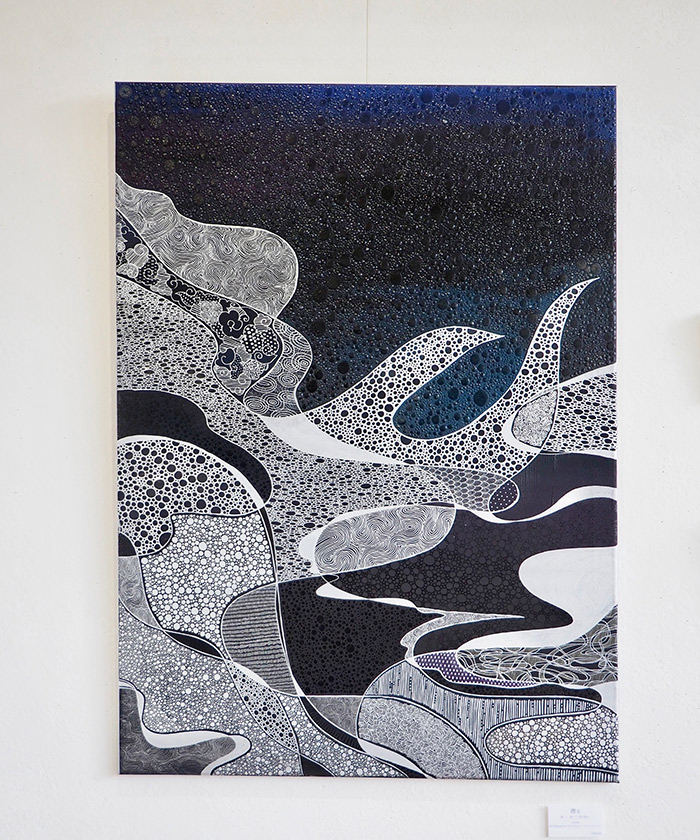 harumiさん:誰かに見てもらうのだから、より丁寧に、そして私と似たような境遇の人の背中をさすってあげるような安心感をもたらす作品をつくりたいと思うようになりました。私は細かい模様を描くのが好きで、それをたくさん敷き詰めてひとつの画を完成させます。その小さい模様ひとつひとつに思いを込めてみようと思ったんです。というのは、私、ここに引っ越してきた頃も、その前も「心の波」が大きくなるときがあって。でも別に、無理してポジティブにならなくたっていい、頑張らなくていい、と自分を肯定したいと思っているんです。同じように、作品を見た人には「元気にならなくちゃ」じゃなくて、「大丈夫だよね」って安心してもらえたらいいなと思っています。