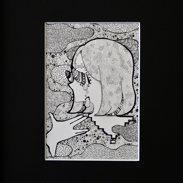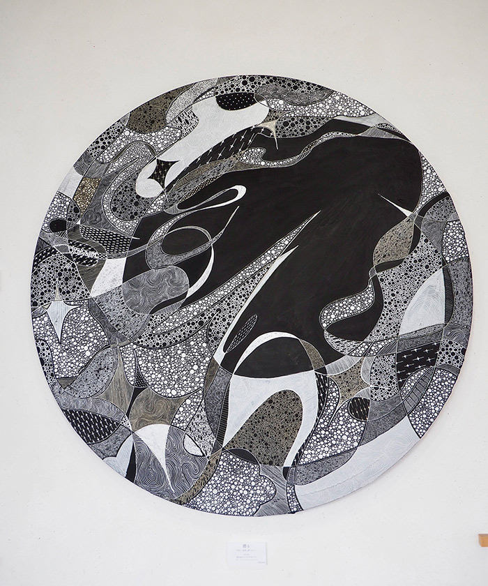 harumiさん:主にボールペンを使って表現している「ペン画」ですね。真っ白なボードを絵の具などで塗りつぶして、その上からボールペンで一つひとつ模様を描いていきます。