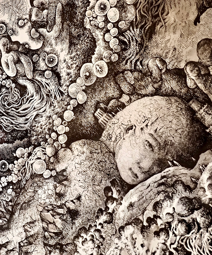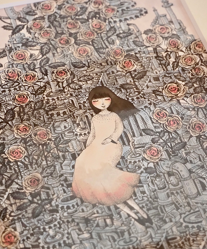 花音さん:空想を描くことが多いんです。見たものをそのまま描くことはあまりしなくて。空想の中に登場するのは、架空の街や植物だったんですけど、最近は人が出てくるようになって。私の絵に人物が登場するなんて、思いもしませんでした。最近は「人が描きたい」と思っているみたいです(笑)