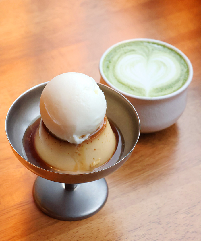 今野さん:プリンアフォガードです。自家製レトロプリンに、ミルクジェラートをのせています。プリンの卵は、糸魚川の養鶏場・渡辺鶏園さんの「元気卵」で、お好みでかけていただくエスプレッソの豆は、老舗製茶問屋である正香園さんが焙煎したものです。糸魚川がぎゅっと詰まったお店の看板スイーツなんですよ。