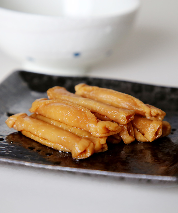 博子さん:輪切りの切り干し大根をお湯で戻した後、水で締めてから脱水して、からしを塗って巻いたらタレに漬け込みます。