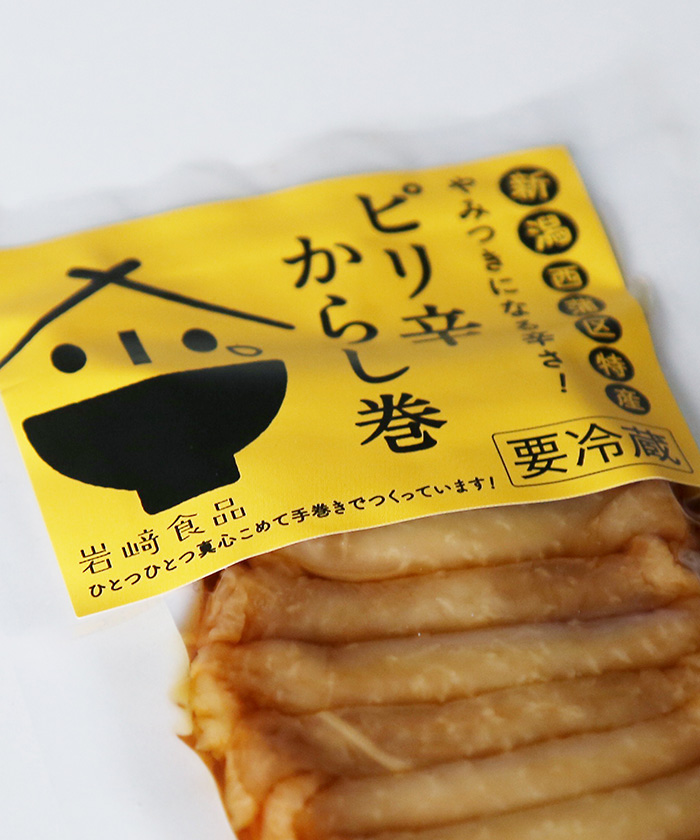 修さん:切り干し大根でからしを巻いた「ピリ辛からし巻」という漬物で、もともとは西蒲原地域の郷土食だったんです。昔は田植えにしても稲刈りしにしても手作業だったので、農家同士が協力し合って多勢で農作業をしていました。そのとき賄いとして振舞ったお膳に切り干し大根のからし巻きがついたんです。