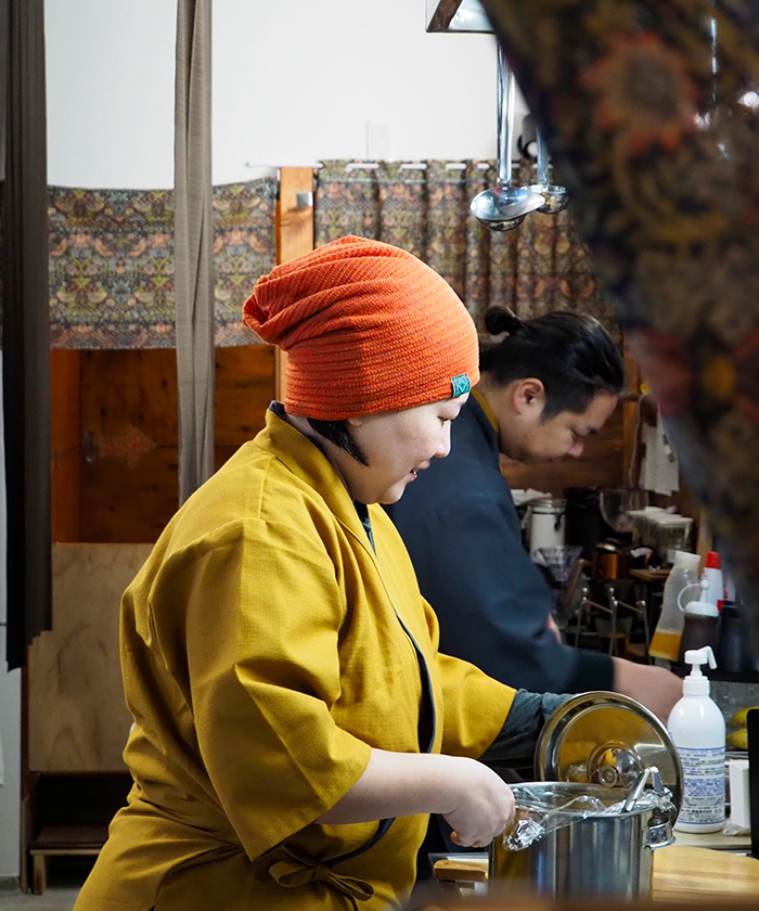 遥さん:せっかくなので制服を作りたいね、という話になりまして。純喫茶みたいなレトロ感のあるお店にしたくて、となると制服は「大正ロマン」のイメージで……といろいろ考えたんですけど、動きやすさなどを考慮して作務衣にたどり着きました。