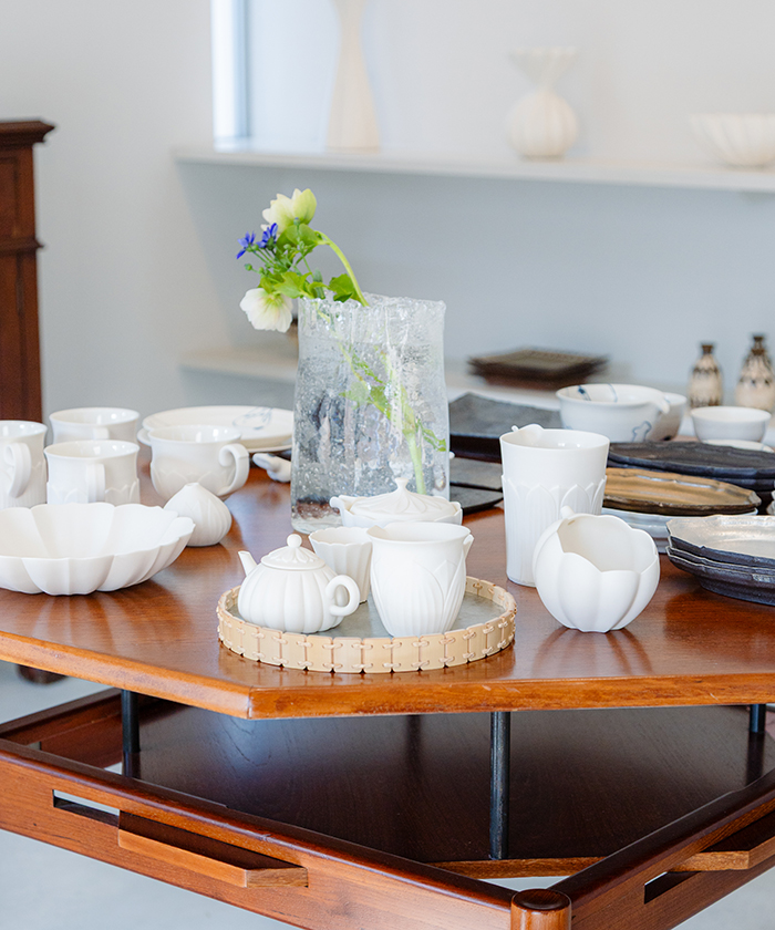 渡辺さん:ここに置いてある商品は、使う人によって楽しみ方は様々です。極端かもしれませんが、器に卵焼きを盛りつけるだけで感動しますし、花器に野花を一輪挿すだけでも、何も挿さずにオブジェとして飾っていただいても、いい雰囲気を作ってくれます。