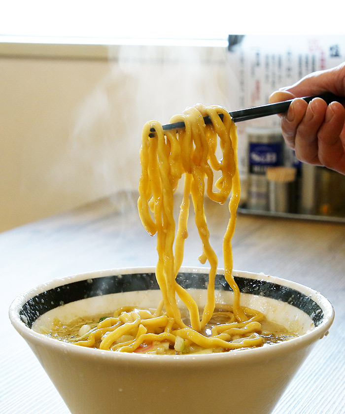 ――ちょっと珍しいくらい超極太の縮れ麺ですよね。