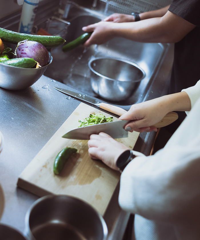中川さん:プロダクトデザイナーと、どんな包丁を作るか意見を出し合う中で、「夫婦で使うようなものがいいんじゃないですか」って話になったんです。そのときは冗談半分でしたけど、その日、家に帰っていろいろ考えてみると、確かにこのアイデアがいいなと思えてきて。共働きの夫婦も多いですし、夫婦揃ってキッチンに立ったときに使える包丁って今の時代にぴったりだなと思いました。