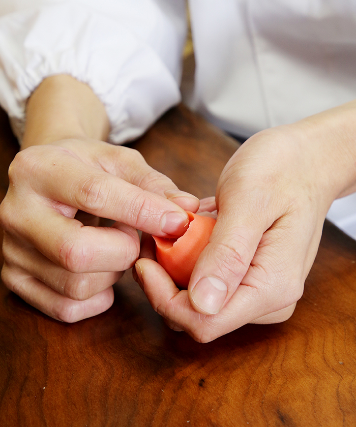 金巻さん:「心豊かなお菓子づくり」を店の合言葉にして、ひとつひとつ丁寧に手づくりしています。季節感を大切にしながら、味だけではなく見た目や香りなど、五感すべてで楽しめるお菓子づくりを目指しています。そのためには製菓技術を磨くだけでなくて、四季折々の自然からも多くのことを学ぶようにしています。