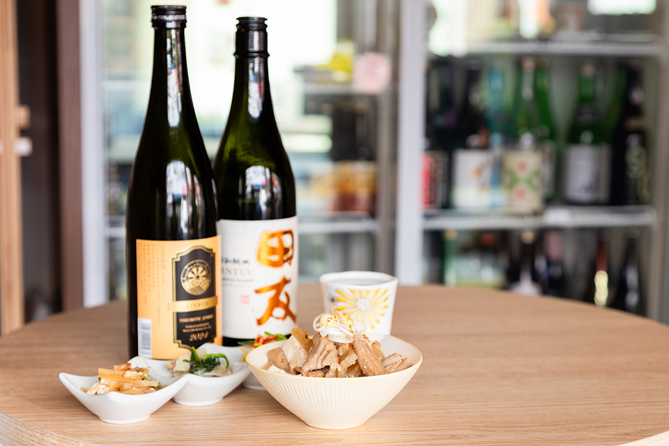 中野さん:お酒は日本酒がだいたい50種類、3つのブリュワリーのクラフトビールも楽しんでもらえます。日本酒は県内外のものを用意していて、県外のものは私たちがその土地で直接飲んで美味しかったものを仕入れています。県内の日本酒は、ご近所の「大坂酒店」さんで選んだものを置いています。