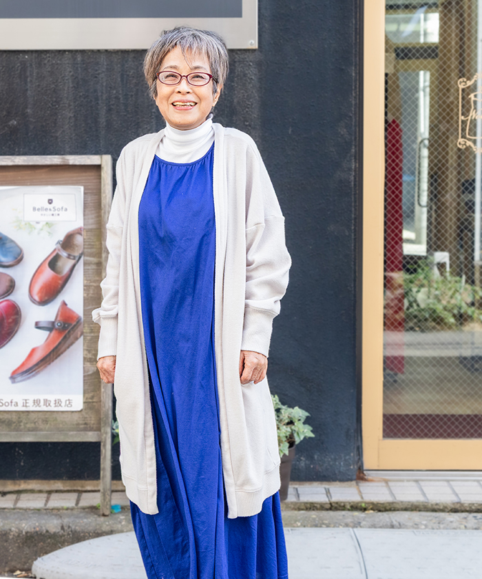 畠山さん:最初は落ち着きのあるアースカラーからつくりはじめたのですが、お客さまの声も聞きながら、パキっとしたビタミンカラーも取り入れるようになりました。1枚だけだと派手に見られるかもしれないですが、今日の母のように、他の色と組み合わせて着ると、とてもいいアクセントになるんですよ。