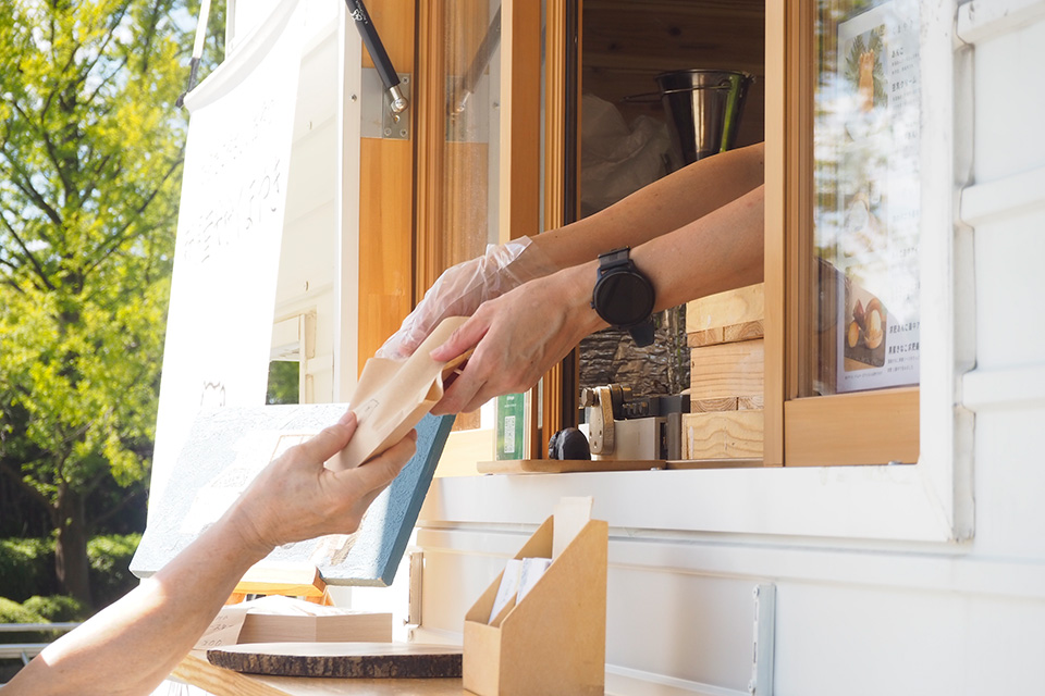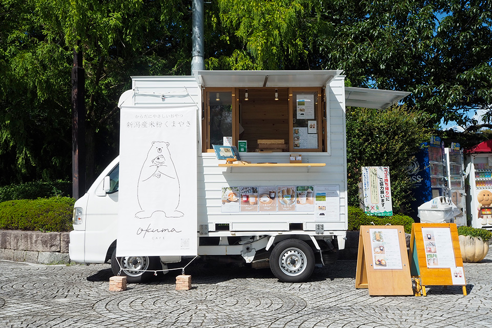 横藤さん:すごく愛着があります。「okuma」のキッチンカーは長野県の業者さんに作ってもらいました。内装は木材を使用していて、車体は白。爽やかな上に温かみもあって、すごく気に入っています。白いキッチンカーって案外珍しいみたいで、イベントで他のキッチンカーと並んでいても目立つんです。