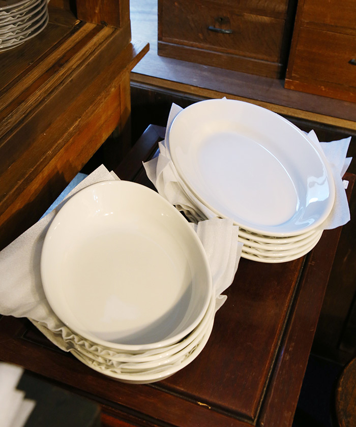 波潟さん:「Satarunia(サタルニア)」の食器もおすすめですね。レストランやバールで使われている、イタリア製の業務用食器なんです。なんの飾り気もないシンプルな器なんですけど、飽きのこないデザインやどっしりした分厚い安定感が人気の商品ですね。