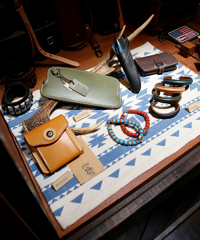 サイトウさん:オーダーメイドの場合は別として、こちらに並んでいるのはスチームパンクやアメリカンバイカーのイメージでつくっている製品なんです。特にアメリカンバイカーの世界観は、僕が革製品をつくりはじめたきっかけになっています。