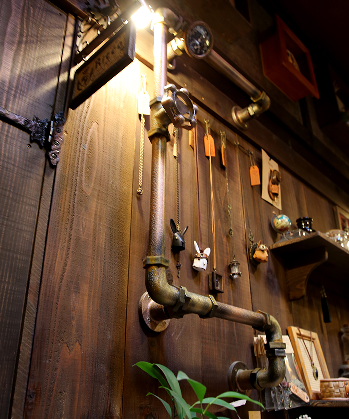 サイトウさん:入って右側は僕がずっと好きだったアメリカンバイカーの世界観、左側は『ハウルの動く城』をはじめとした宮崎駿監督のアニメ作品でもよく見かける、スチームパンクの世界観をイメージしました。