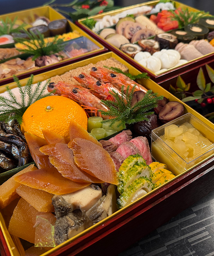 齋藤さん:この頃はおせち料理にも力を入れています。お客様からの声にお応えしてはじめたんですけど、一年を締めくくる気持ちで取り組んでいます。日持ちさせることが大前提ですので、じっくりと長時間煮込むことで食材の水分を出汁に入れ替え、傷みにくくする工夫をしているんです。