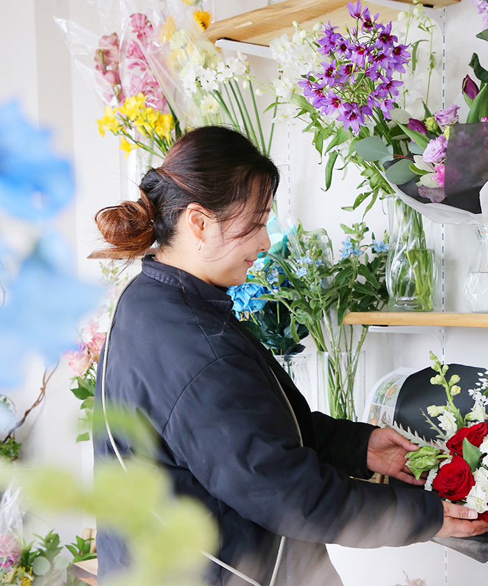 佐藤さん:これからの時期は卒業や転勤、入学のシーズンですから忙しいですね。母の日がピークで、それを過ぎると落ち着きます。以前は母の日の前日になると職場へ泊まり込んで徹夜をしたものです。おかげで24時間働いても疲れないようになりました(笑)