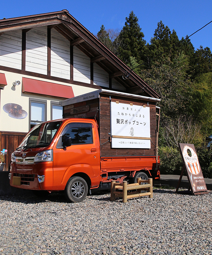 有機農法で自家栽培したトウモロコシを使ったポップコーンを、DIYしたキッチンカーで販売している人がいる。そんな噂を聞き、澄み切った青空の下、紅葉が美しい五泉エリアまで「旅農笑人(たびのしょうにん)」さんに会いに行ってきました。