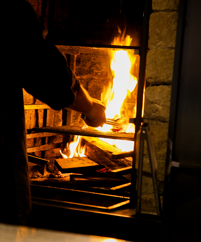 諏佐さん:山菜を採りに山へ入ると、荒れ果てた様子を見ることが多くて、林業の問題を考えるようになったんです。少しでも山に還元することができればと思って、調理に薪を使うことにしました。それと、薪火料理って料理の原点だと思っているんです。