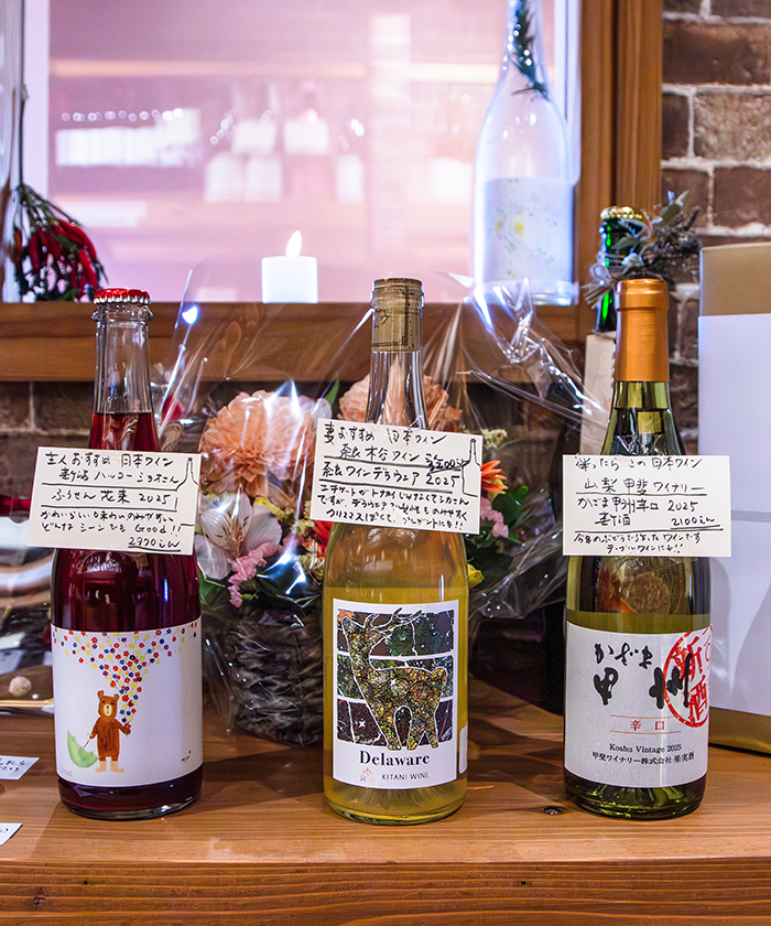 澤田さん:なるべく、行ったことのある土地のワインを選ぶようにしています。日本ワインのいいところって、ブドウが育ったその土地をイメージしやすいことだと思うんです。フランスの産地の気候や土の特徴をお伝えしても、行ったことがないとあまりピンとこないですよね。でも、国内であれば行ったことがある土地が多いので、その土地の特徴とワインの味わいが、リンクしやすいと思っています。