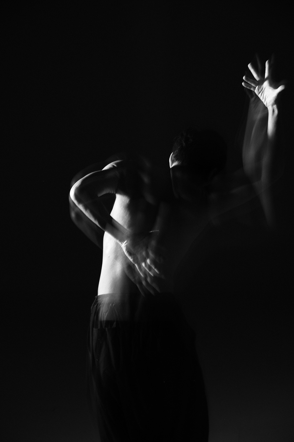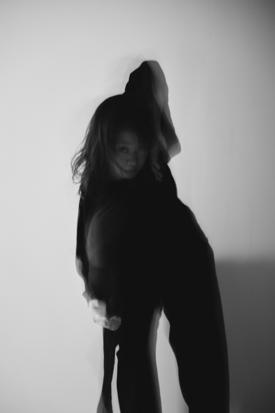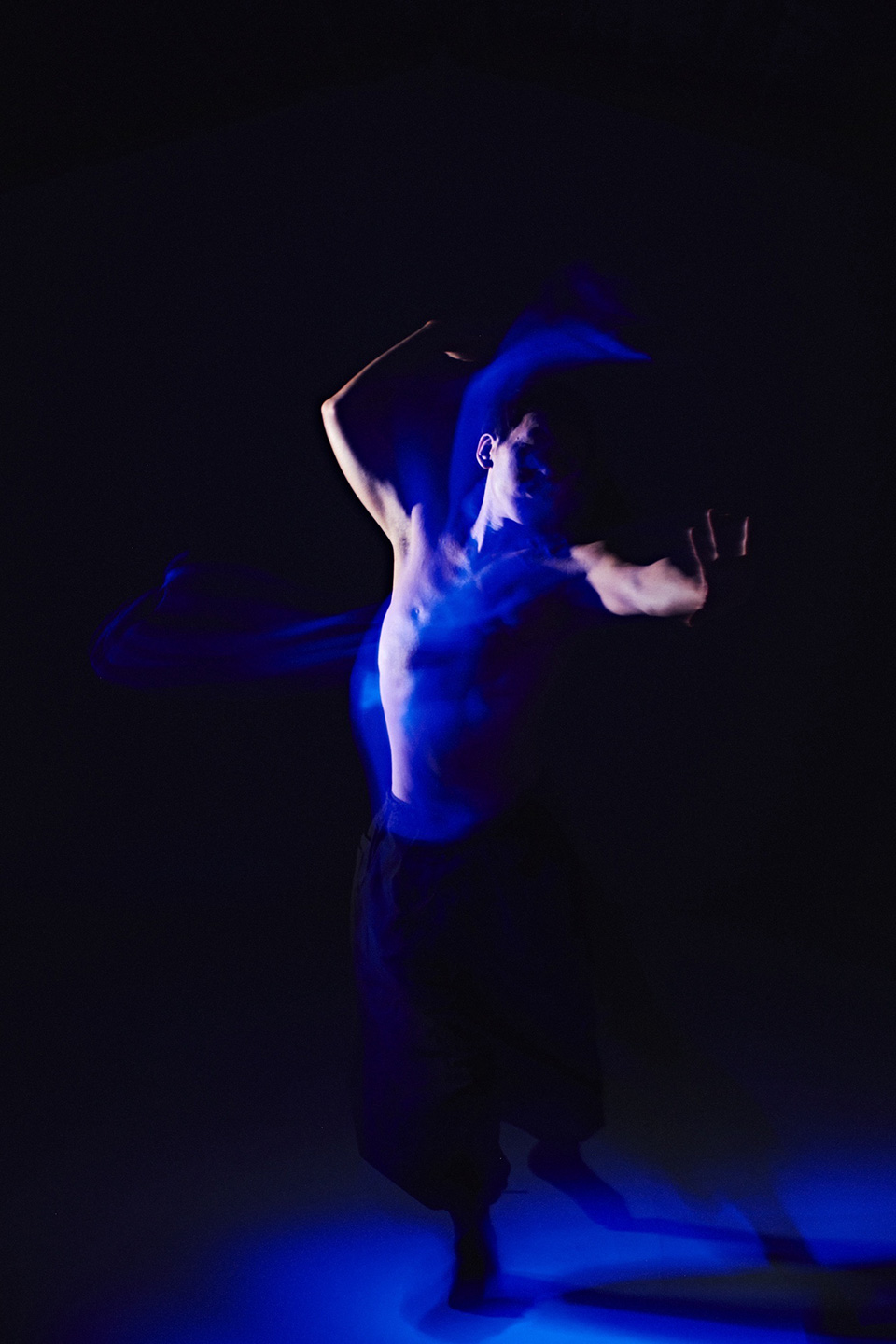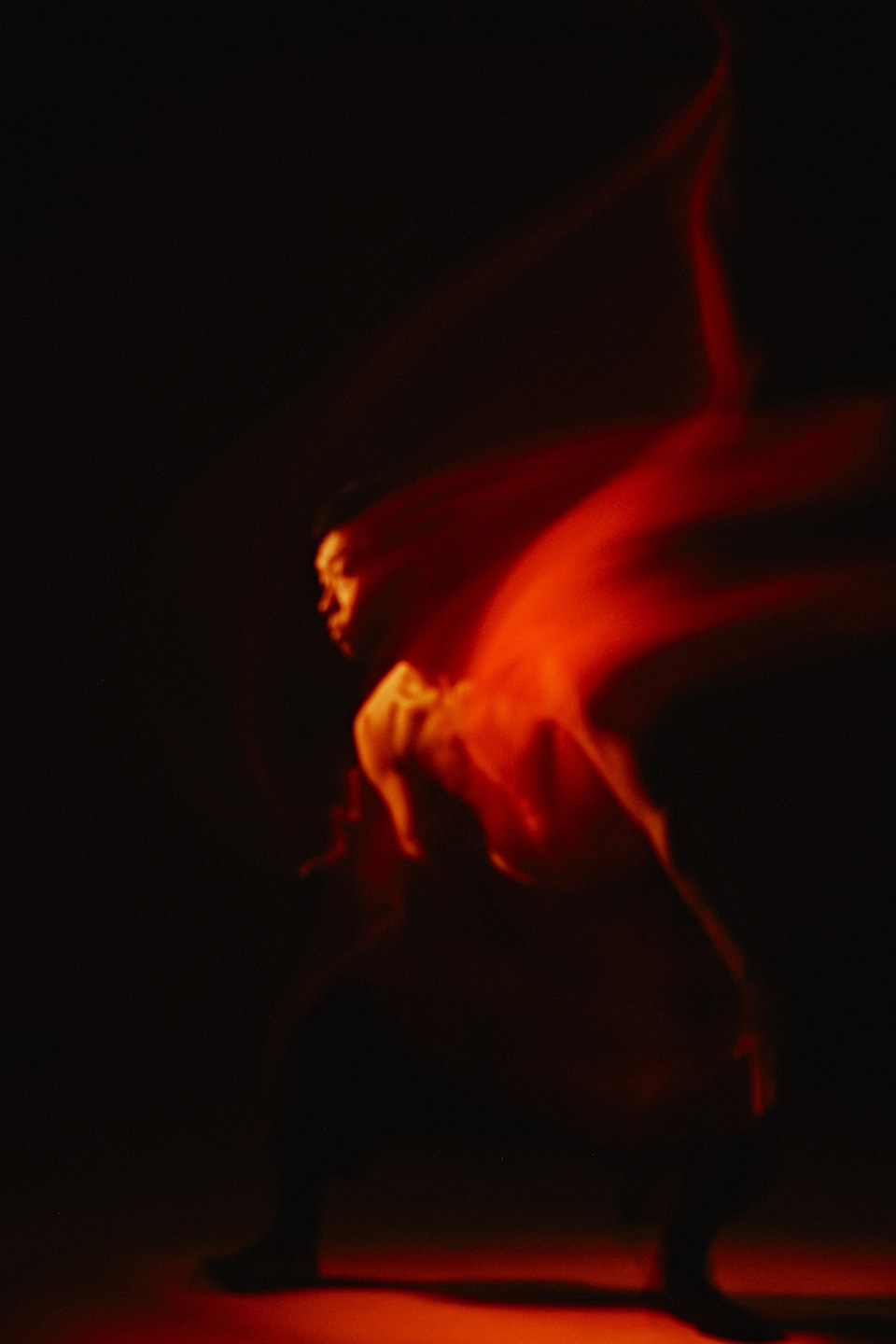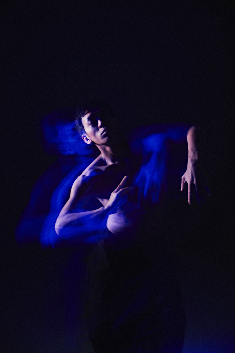 「本作は、NEphRiTE dance companyのご協力のもと制作しました。テーマを伺った瞬間から、この撮影をやろうとすぐに決まりました。コンテンポラリーダンス特有の身体操作やその瞬間ごとに生まれる空気には生で見ると引き込まれるような力があります。スローシャッターで身体の軌跡を写し取ることで、写真でありながらも“動き”を感じさせる表現を目指しました。静と動のあいだに生まれる時間の揺らぎを、感じていただければ幸いです。」